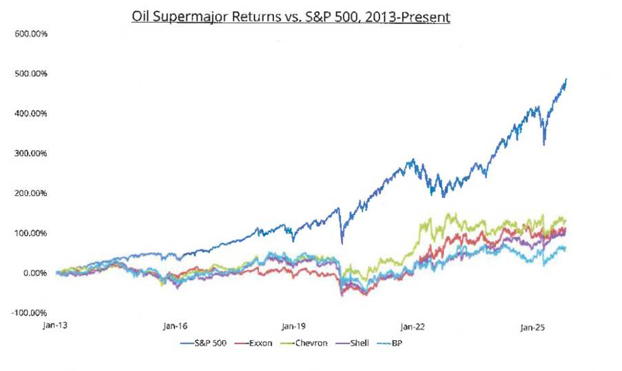Cole thinks big tech is yesterday’s story and points out that 3% of the S&P is in energy today. They have 24% of one fund in energy and 43% in another. Industry investment has collapsed and returns are increasing.