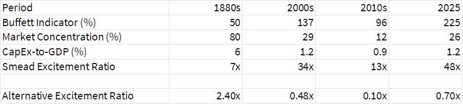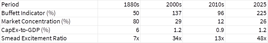 A new framework combining valuation, concentration and capex; and why today looks like past manias.