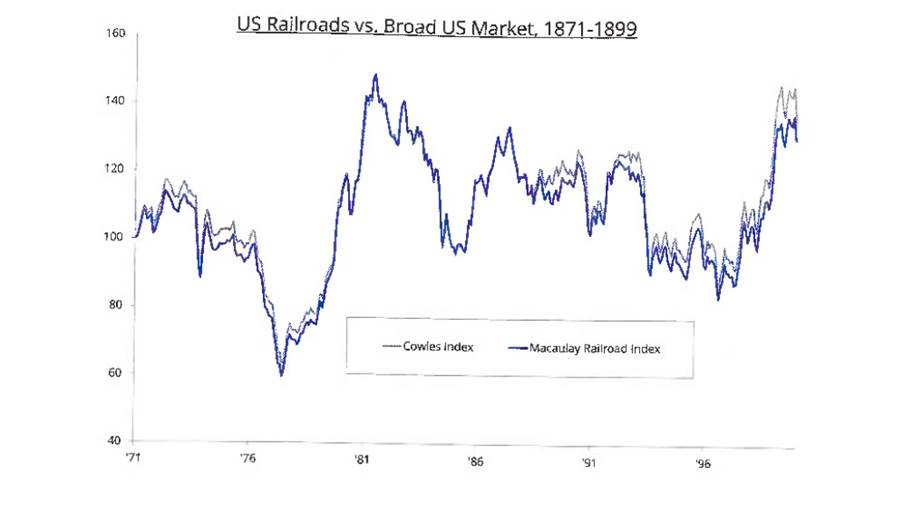 Cole went on to look at the aftermaths in share price terms. In the second half of the 19th century, the railroads were the market, but today they are irrelevant, having underperformed over that 100+ years: